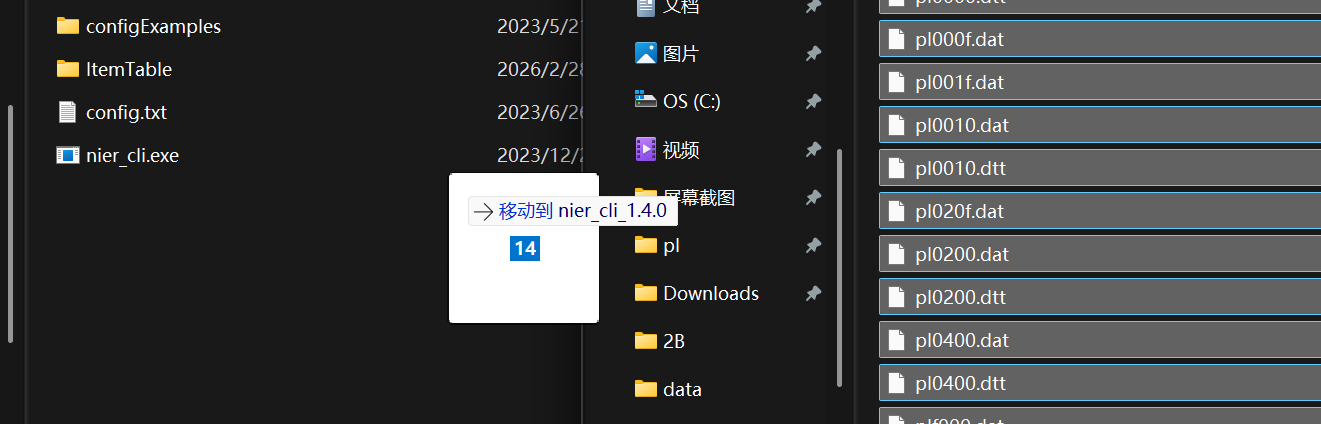 和CPK文件一样,nier_cli.exe也可以解压dat和dtt文件,将整个文件夹的文件(或你自己选的文件)拖入程序