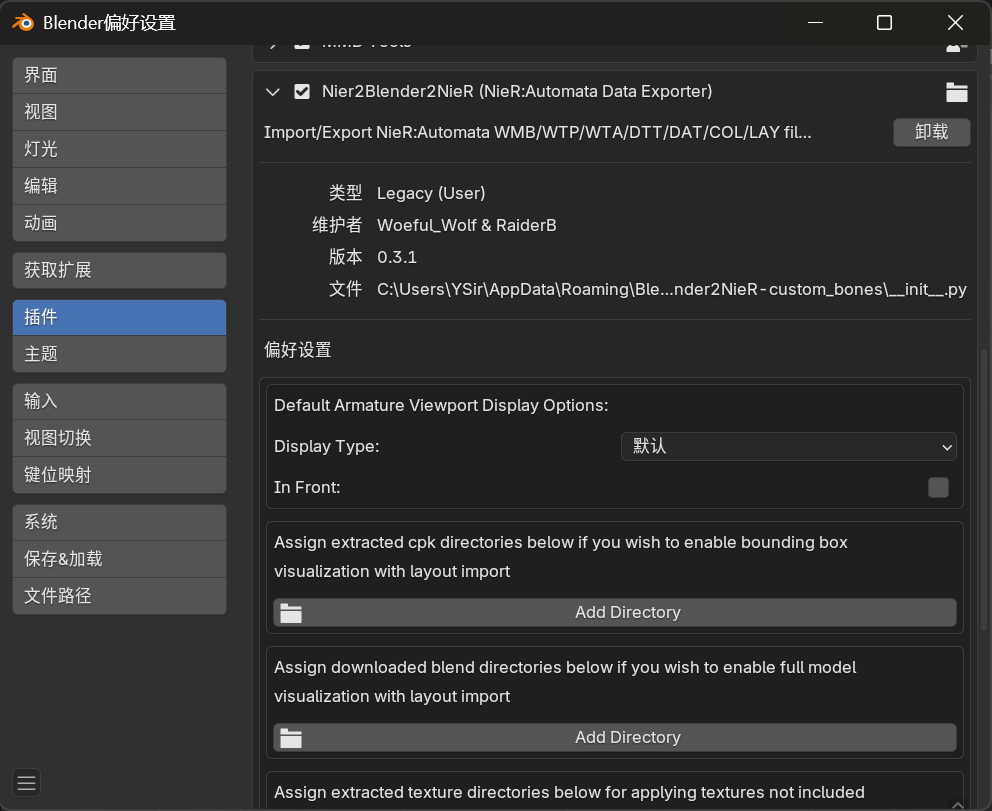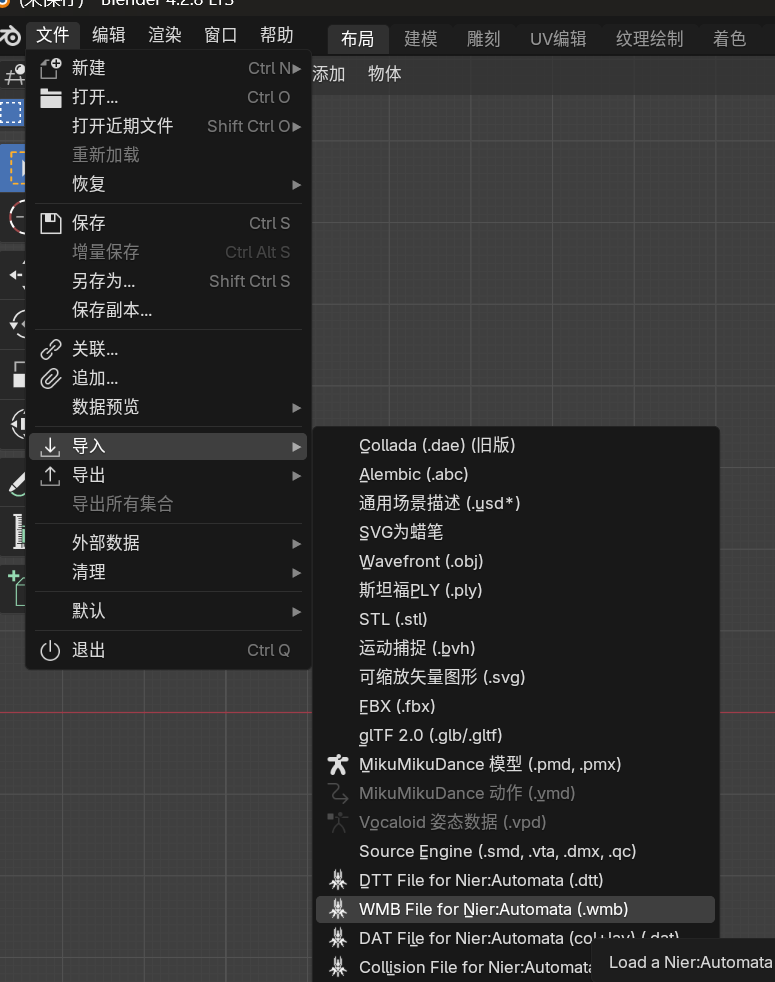 blender插件NieR2Blender2NieR:https://github.com/WoefulWolf/NieR2Blender2NieR
