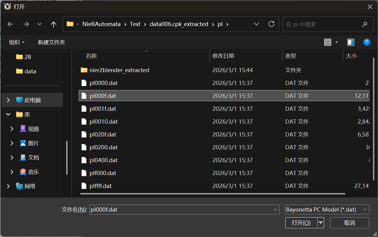 点击OK,接着选择pl000f.dat,2B的动作文件存放于此处