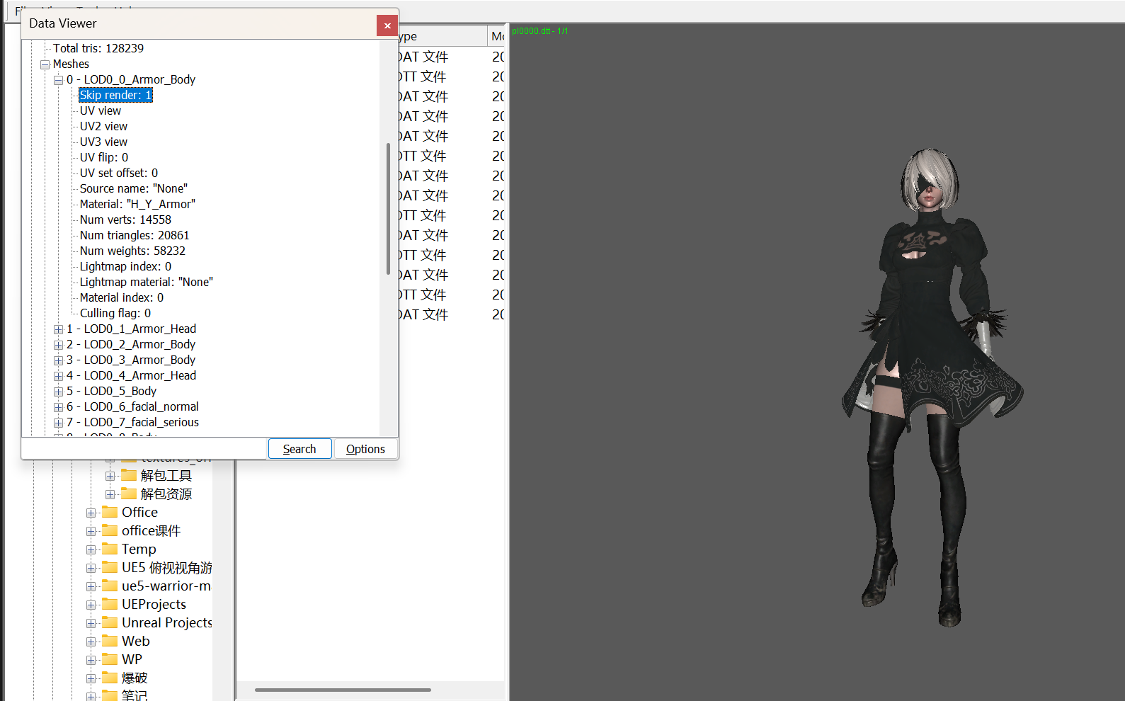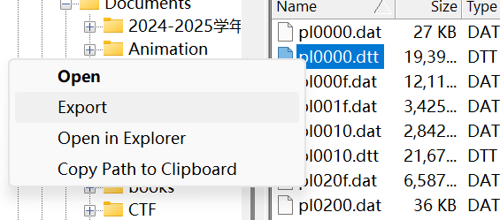 可以看到pl文件中有很多.dtt和.dat文件,其中.dtt中有模型、贴图文件,而.dat文件中有动作文件,只需要模型则不用管.dat文件