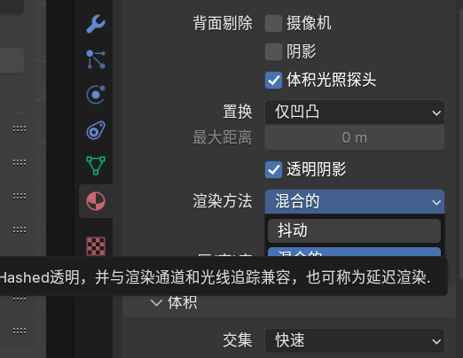 如果遇到这种bug把局部对应的材质属性->设置->渲染方法由混合的改为抖动