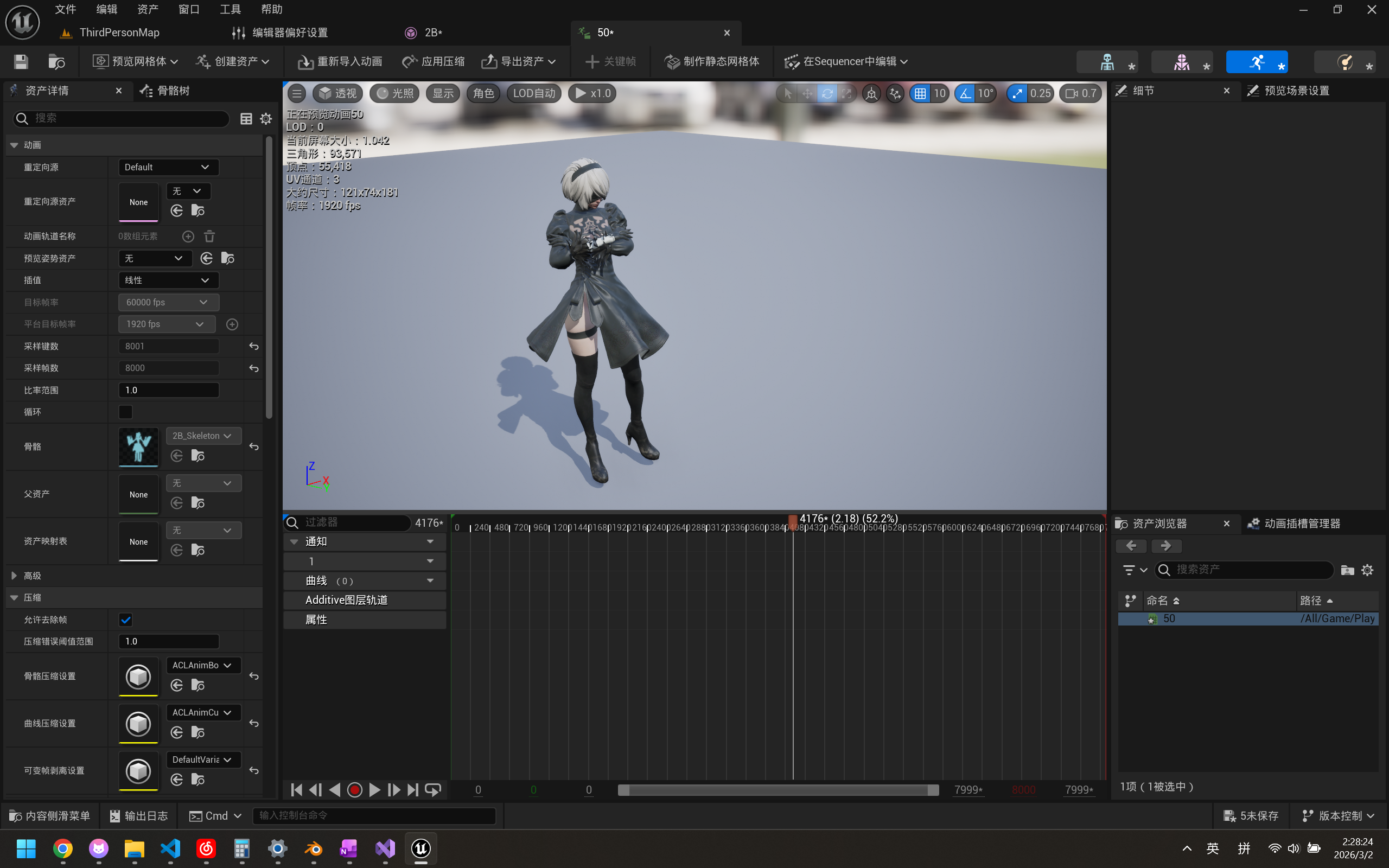其中mesh里装着2B的模型,Animation则是2B的动画