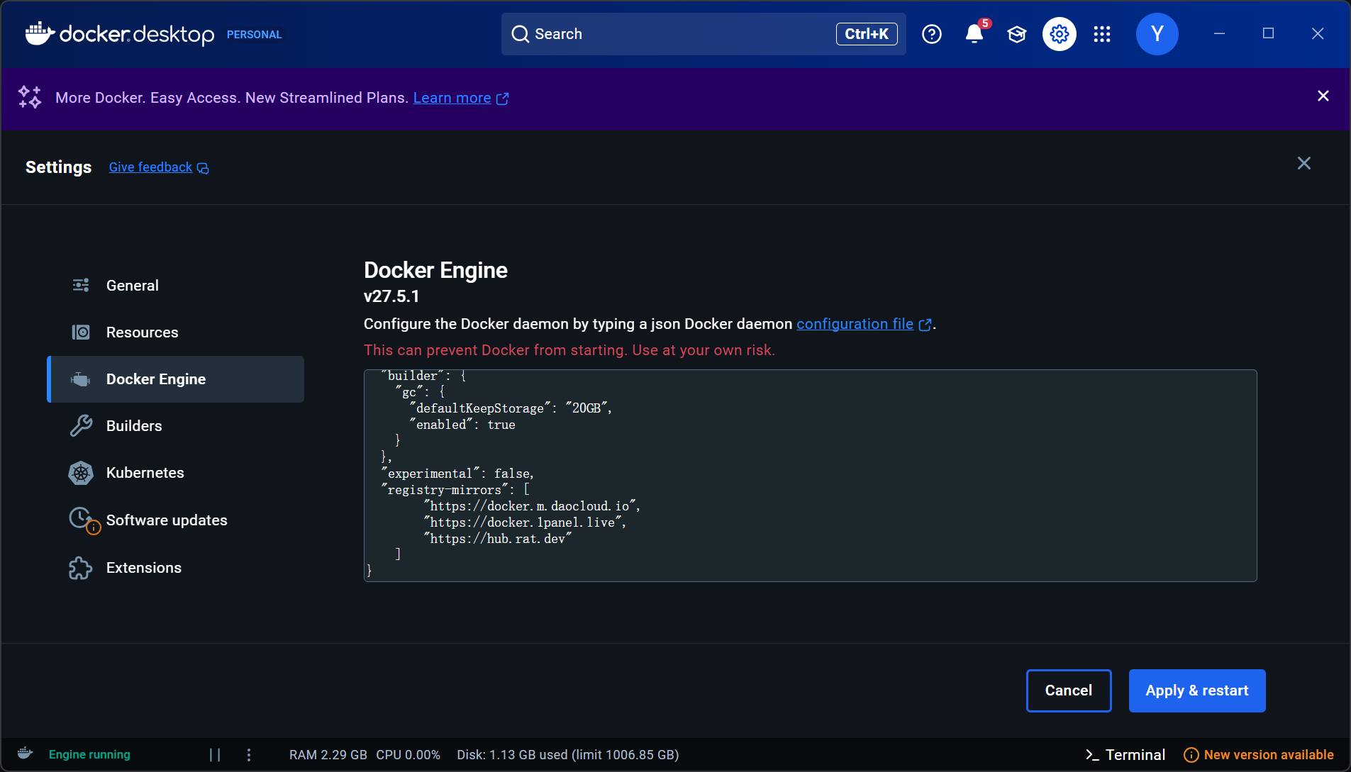 docker.io/library/nginx:latest配置镜像站(下载有问题),复制: