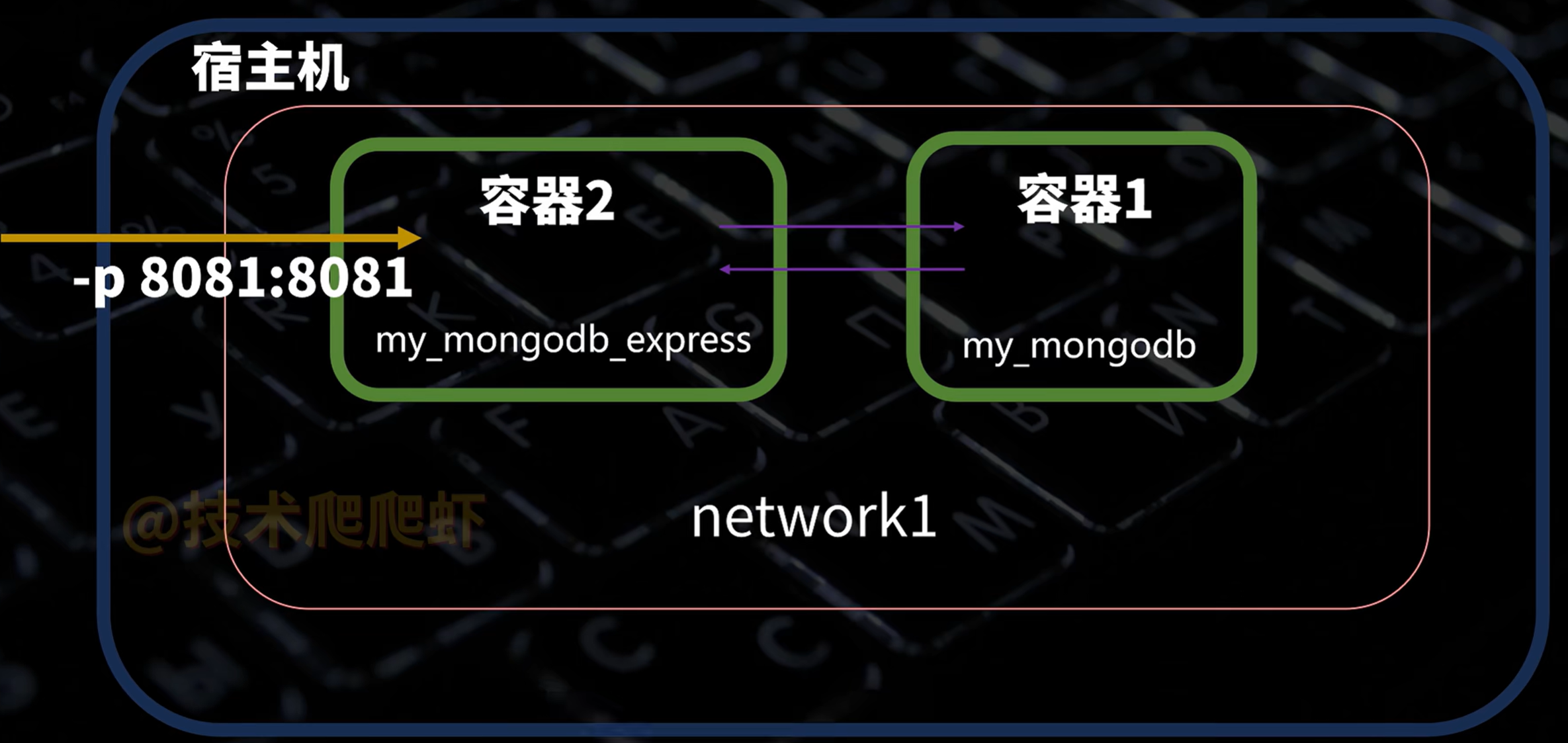 1 | //该容器没进行端口映射,目的是不能让客户机直接访问数据库 |